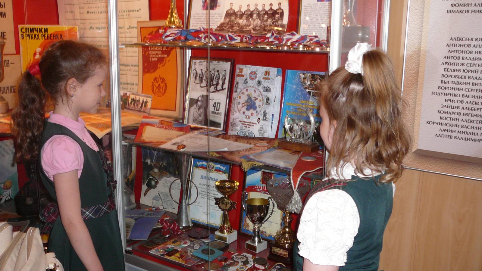 Сашу и Настю заинтересовал стенд о спортсменах-пож